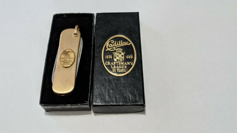 VINTAGE 1935 - 85 CADILLAC 50 YEARS CRAFTSMAN''S LEAGUE ANVIL KNIFE ORIGINAL BOX