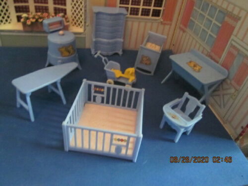 RENWALBLUE NURSERY SET PLASTIC DOLLHOUSE FURNITURE Plasco Marx