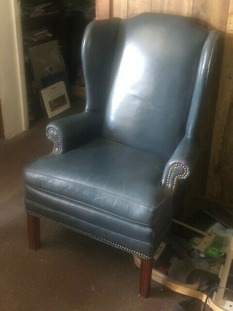 Title (ebay affiliate link): Chippendale Style Blue Leather Wing Back Chair - Excellent Condition