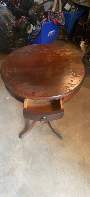 Antique Round Drum Side End Accent Top Table 1 Drawer