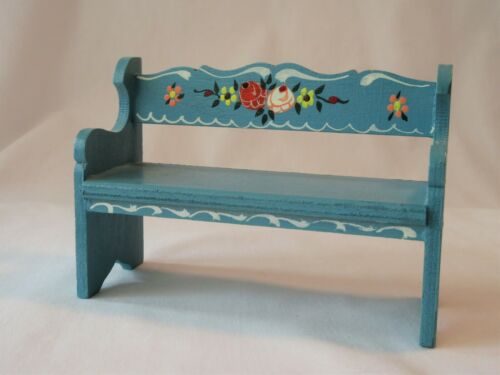 VTG DORA KUHN West Germany Wood Painted Dollhouse Furniture Blue Bench 1 piece