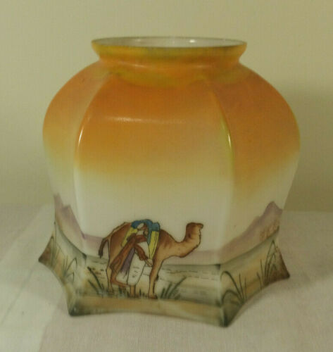 Vintage gas lamp glass shade, egyptian landscape scene, fits Tilley lamp