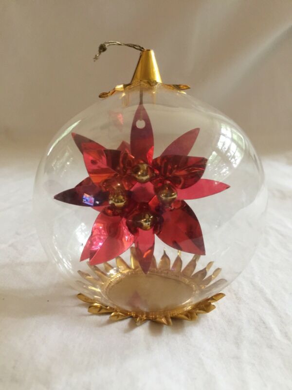 Title (ebay affiliate link): Vintage Resl Lenz Moving Glass Foil Ornament Germany Red Poinsettia