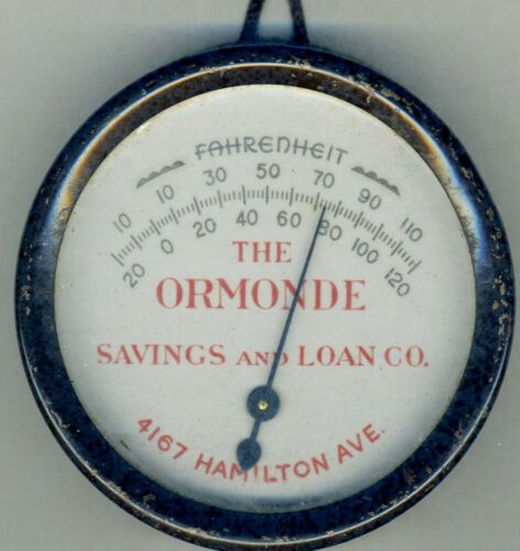 Metal Antique Wall Thermometer -Cincinnati Oh The Ormonde Savings & Loan