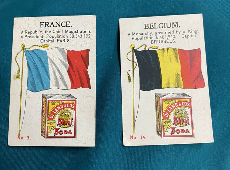 Title (ebay affiliate link): Victorian Trade Card DeLand Cap Sheaf Soda FRANCE & BELGIUM National Flag Set