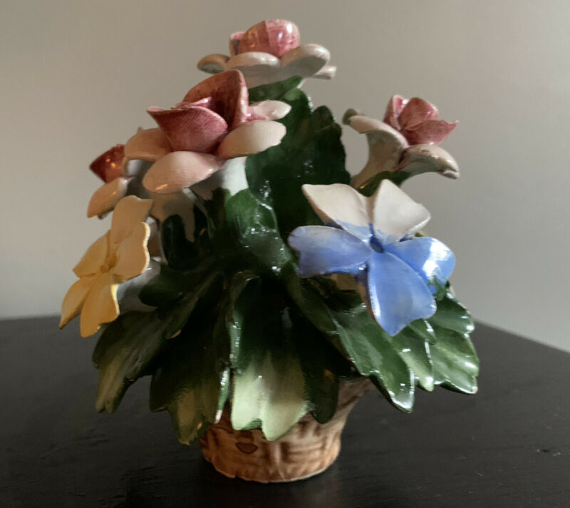 vintage Nuova Capodimonte porcelain floral basket centerpiece Italy