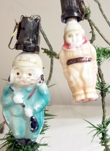 Hockey Cat. Boy Aviator. Two C-6 Miniature. Milk Glass, Japan. No working