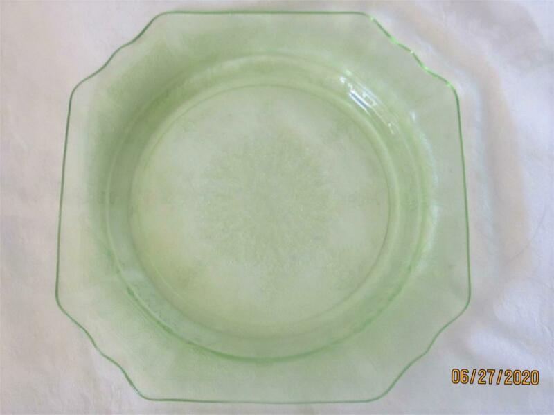 Green Depression Glass Square Plate Princess 8 1/2"