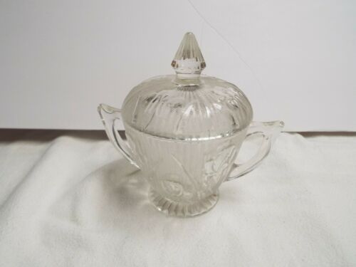 Title (ebay affiliate link): Vintage Jeannette Iris & Herringbone Clear Glass Sugar Bowl with Lid