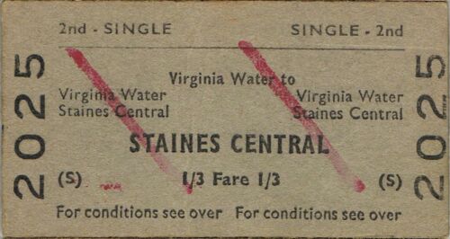 Title (ebay affiliate link): Railway ticket BR Virginia Water to Staines Central second class single 1964