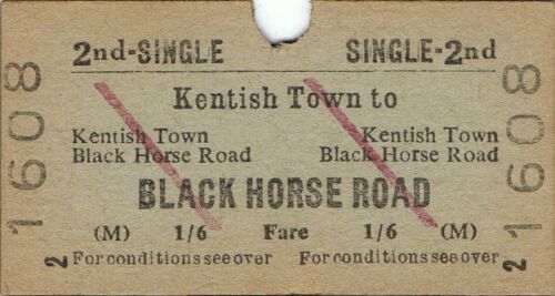 Title (ebay affiliate link): Railway ticket BR Kentish Town to Black Horse Road second class single