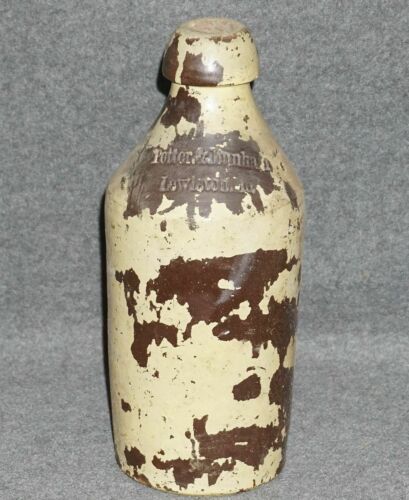 Antique stoneware pop bottle marked potter & Dunham, Lewiston, Maine
