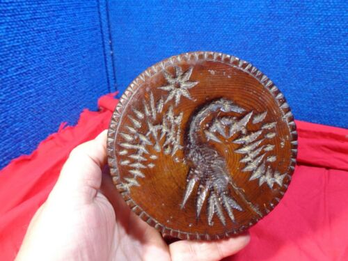 Primitive Carved Wood Winged Eagle Butter Mold Press Folk Art. BX-O