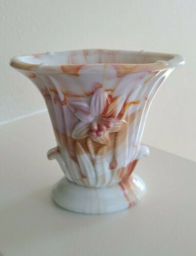 Vintage Akro Agate Slag Glass Lily Vase Orange & White