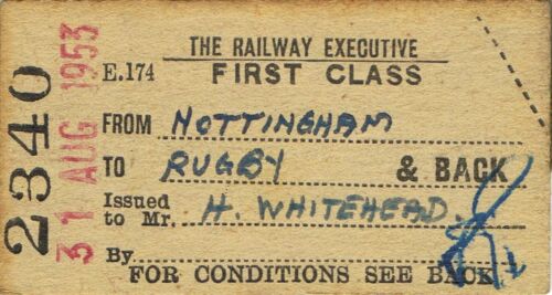 Title (ebay affiliate link): Railway ticket BR Nottingham to Rugby first class return 1953