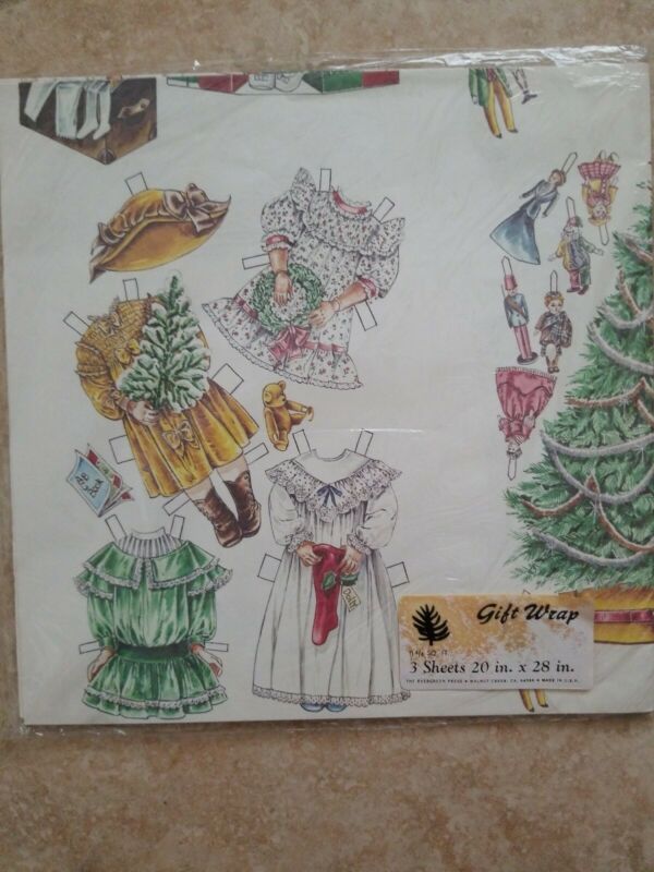 Title (ebay affiliate link): Vtg Christmas Gift Wrap PAPER DOLL GIRL Victorian Wardrobe NOS Sealed!