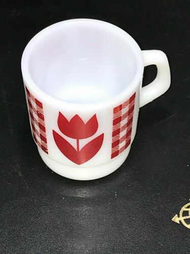 Title (ebay affiliate link): Rare VINTAGE TERMOCRISA Red Tulip MILK GLASS MUGS new condition !