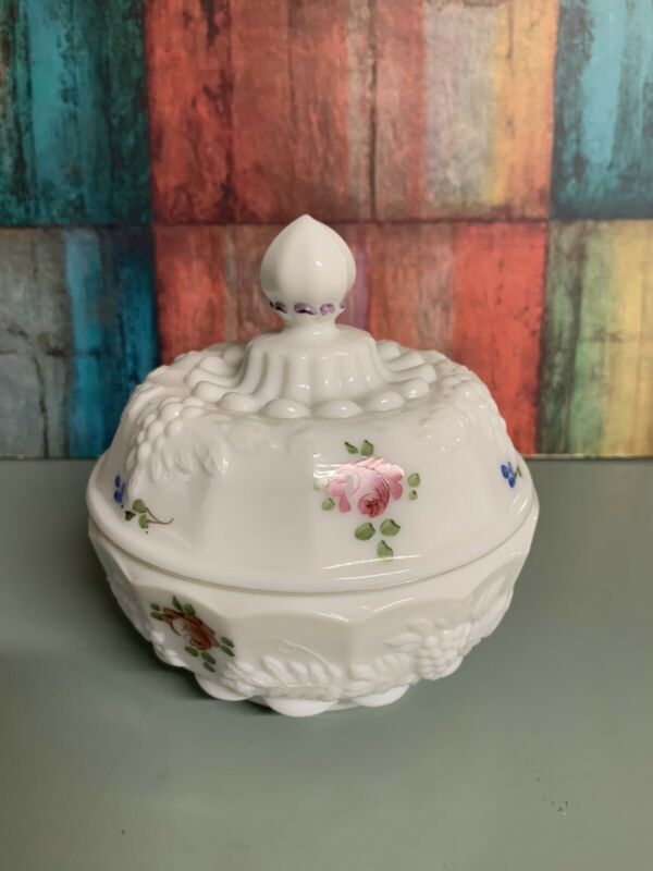 Title (ebay affiliate link): Vintage Westmoreland Milk Glass Pink Roses Covered Dish. Signed T Naples 1978