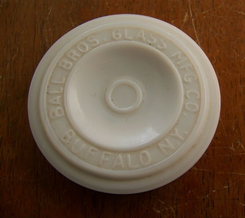 Ball Bros Glass Buffalo NY embossed milkglass jar lid for BBGM Co fruit jar