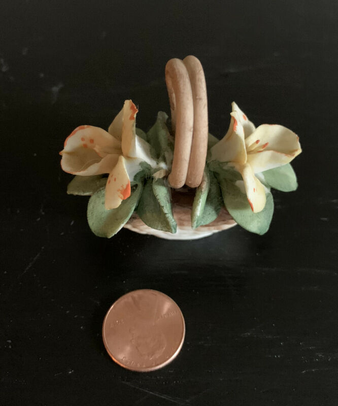 MINI Vintage Capodimonte Italian Porcelain Basket Yellow Flowers Italy N Crown