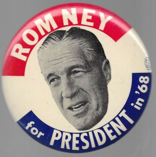 Title (ebay affiliate link): GEORGE ROMNEY FOR PRESIDENT IN ''68 POLITICAL CAMPAIGN PIN