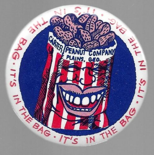 Title (ebay affiliate link): IT''S IN THE BAG JIMMY CARTER BAG OF PEANUTS CARTOON POLITICAL PIN