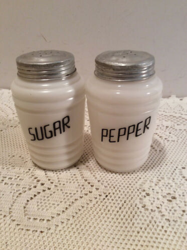 Title (ebay affiliate link): Vintage Shakers White Milk Glass Pepper And Sugar There 4 1/2" Tall