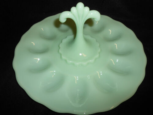Jadeite green glass Deviled Egg serving Plate Platter tray Jadite Jade milk anna