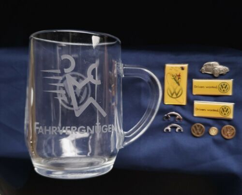 VINTAGE VOLKSWAGEN FAHRVERGNUGEN COFFEE MUG AND LAPEL PINS