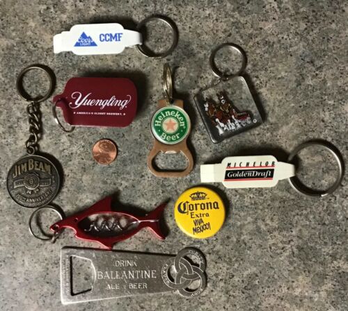 VINTAGE LOT BALLANTINE BUDWEISER BEAM HEINEKEN COORS BOTTLE CAN OPENER KEY CHAIN
