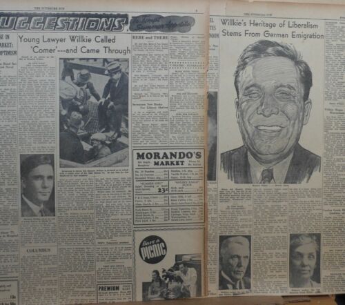 Two 1940 newspaper articles about Wendell Willkie Rep. Presidential Candidate