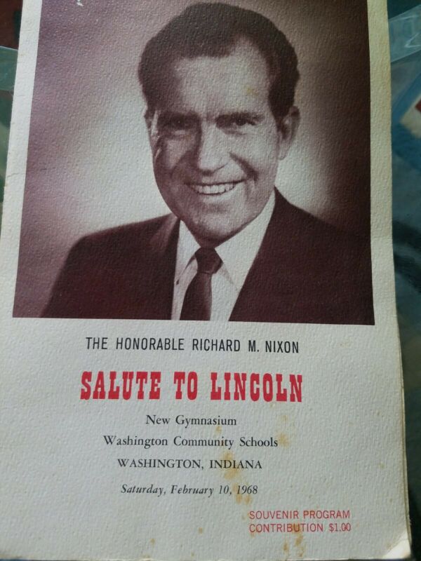 Title (ebay affiliate link): RARE Richard Nixon Feb 1968 Salute to Lincoln Day Washington, Indiana w/ribbon