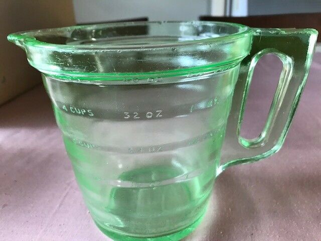 Title (ebay affiliate link): VINTAGE LARGE GREEN MEASURING DEPRESSION GLASS PITCHER