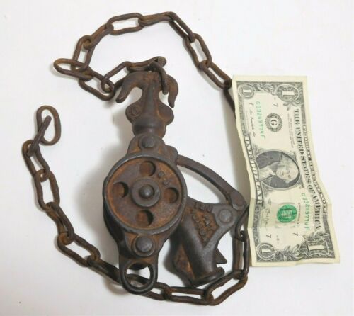 Title (ebay affiliate link): Vintage Hay Sling Rope Connector 2 Sheave Pulley Antique Farm Barn Hay Trolley
