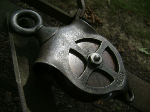 Title (ebay affiliate link): Antique Vintage Cast Iron Barn Pulley Farm Tool Rustic Primitive Hay Trolley