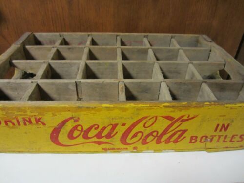 Title (ebay affiliate link): Vintage Coca Cola Wood 24 Bottle Carrying Crate Yellow 1964