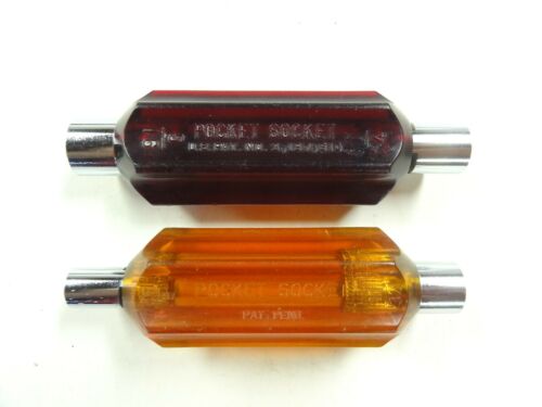 2 VINTAGE POCKET SOCKETS HAND WRENCHES NUT DRIVER TOOLS VERY GOOD USED