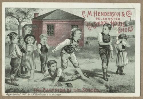 Victorian Trade Card CM Henderson Red School House Shoes; Swope Co. Seymour Ind.
