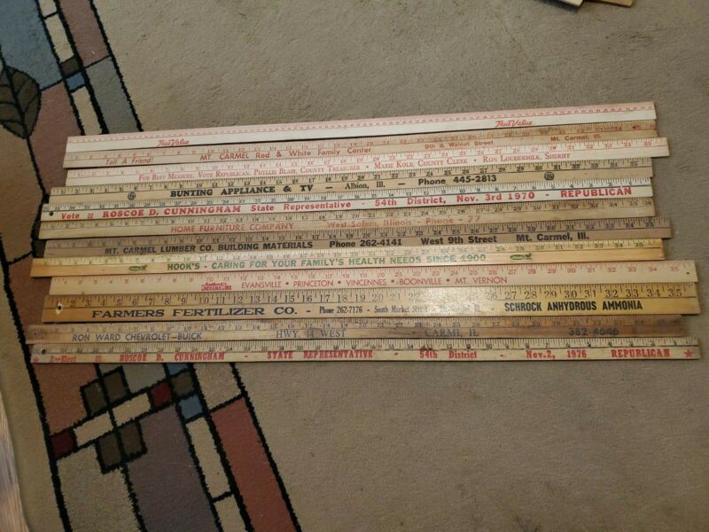 Vintage Advertising Yardsticks -Lot of 12 Wooden -Southern Illinois -Chevrolet++