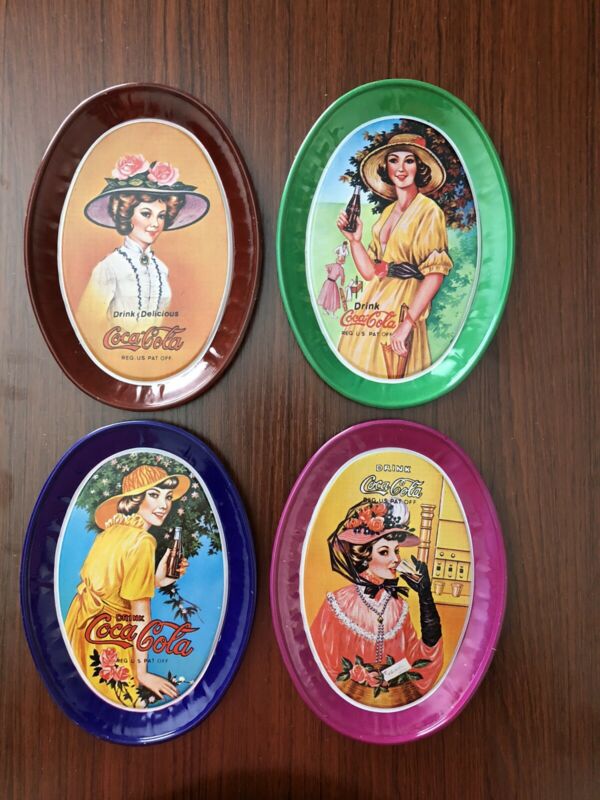 Title (ebay affiliate link): Coca Cola Collectibles Lot Of 4 Mini Tin Oval Trays with Victorian Lady