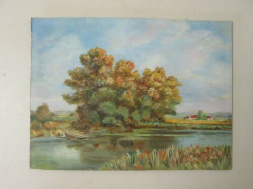 Title (ebay affiliate link): ANTIQUE EARLY AMERICANA ORIGINAL OIL ON BOARD PAINTING OF A COUNTRY SCENE