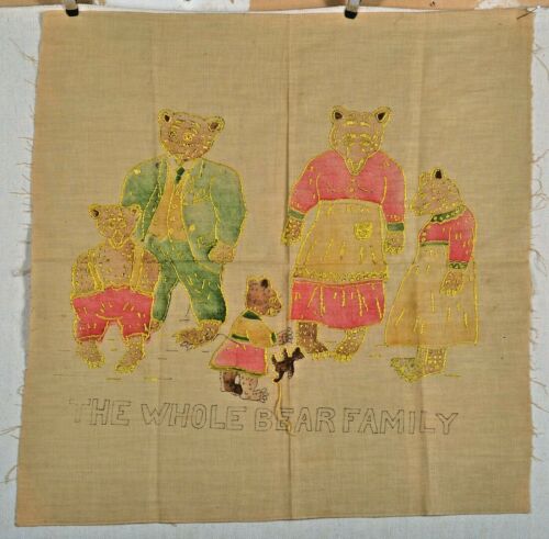 Title (ebay affiliate link): Antique Rustic Folk Art Paint Embroidery Textile Wall Art THE WHOLE BEAR FAMILY