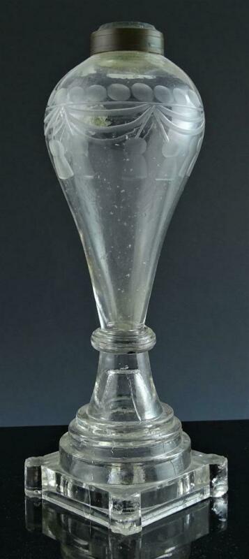 BOSTON SANDWICH PITTSBURG FLINT GLASS WHALE OIL LAMP w/ORIG DOUBLE BURNER c1830