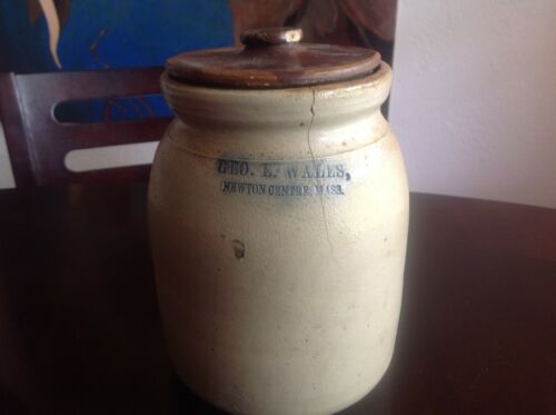 Title (ebay affiliate link): Antique Geo. E. Wales newton center Massachusetts stoneware tobacco jar
