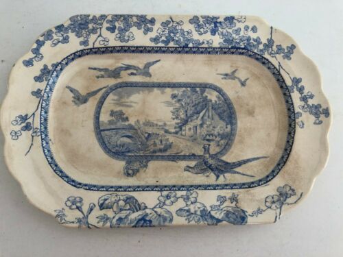 Brownfield & Sons Transferware Plate Platter Blue Antique Pheasant England Dish
