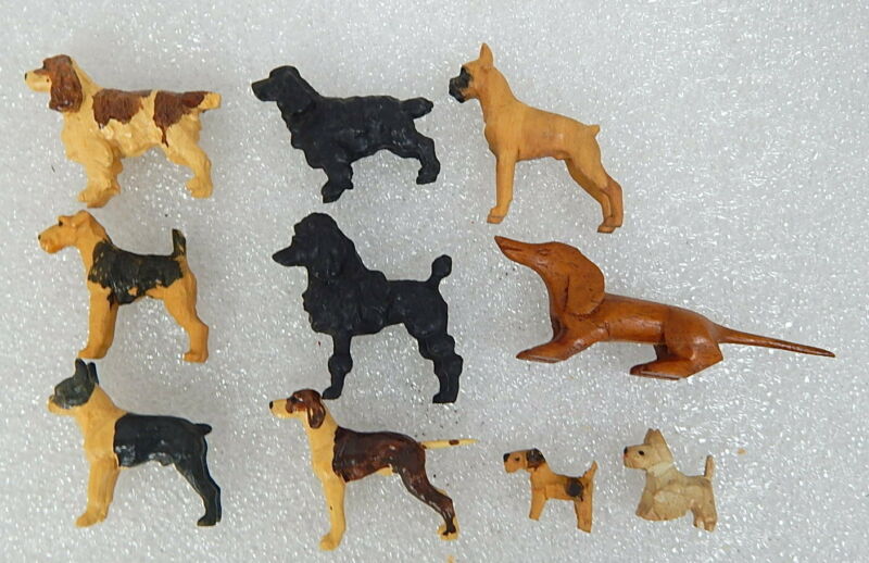 Vintage hand carved folk art wooden dog figure lot boxer poodle setter terrier