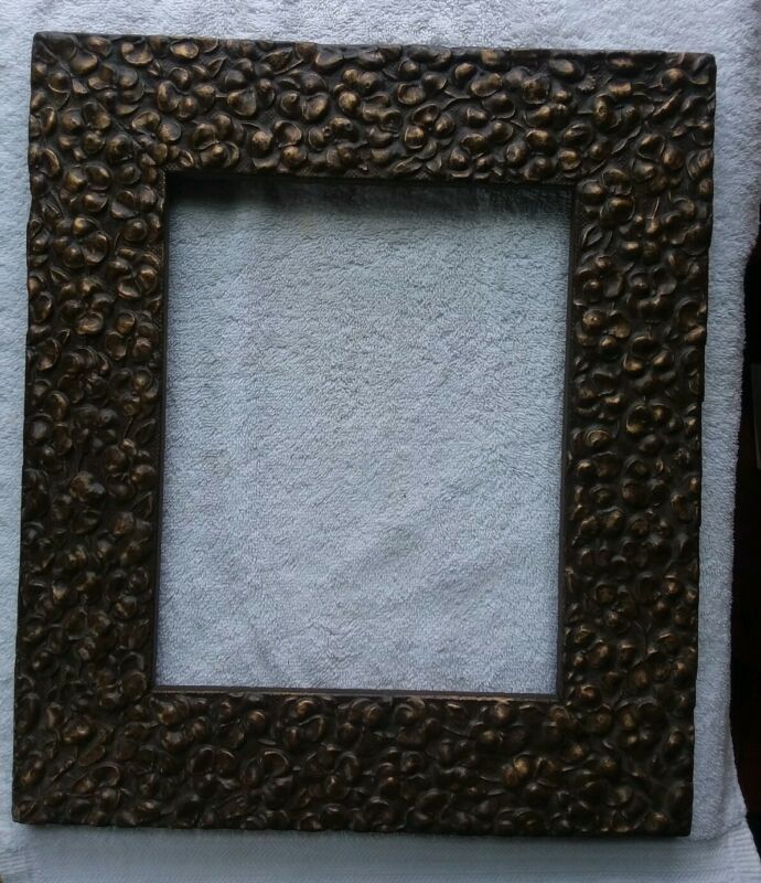 UNUSUAL ANTIQUE PLASTER WOOD PICTURE FRAME ORNATE FLORAL BRONZE FINISH 8x10