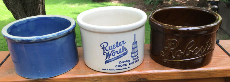 Lot Of Three Antique Butter Crocks