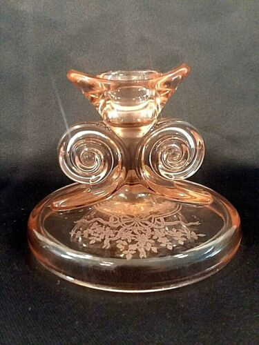 Vintage Fostoria Art Deco Pink Depression Scroll Candlestick Romantic Pattern
