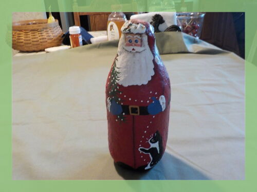 Santa Claus Hand Painted Bottle Black Cat Crafted Displayed Great Condition